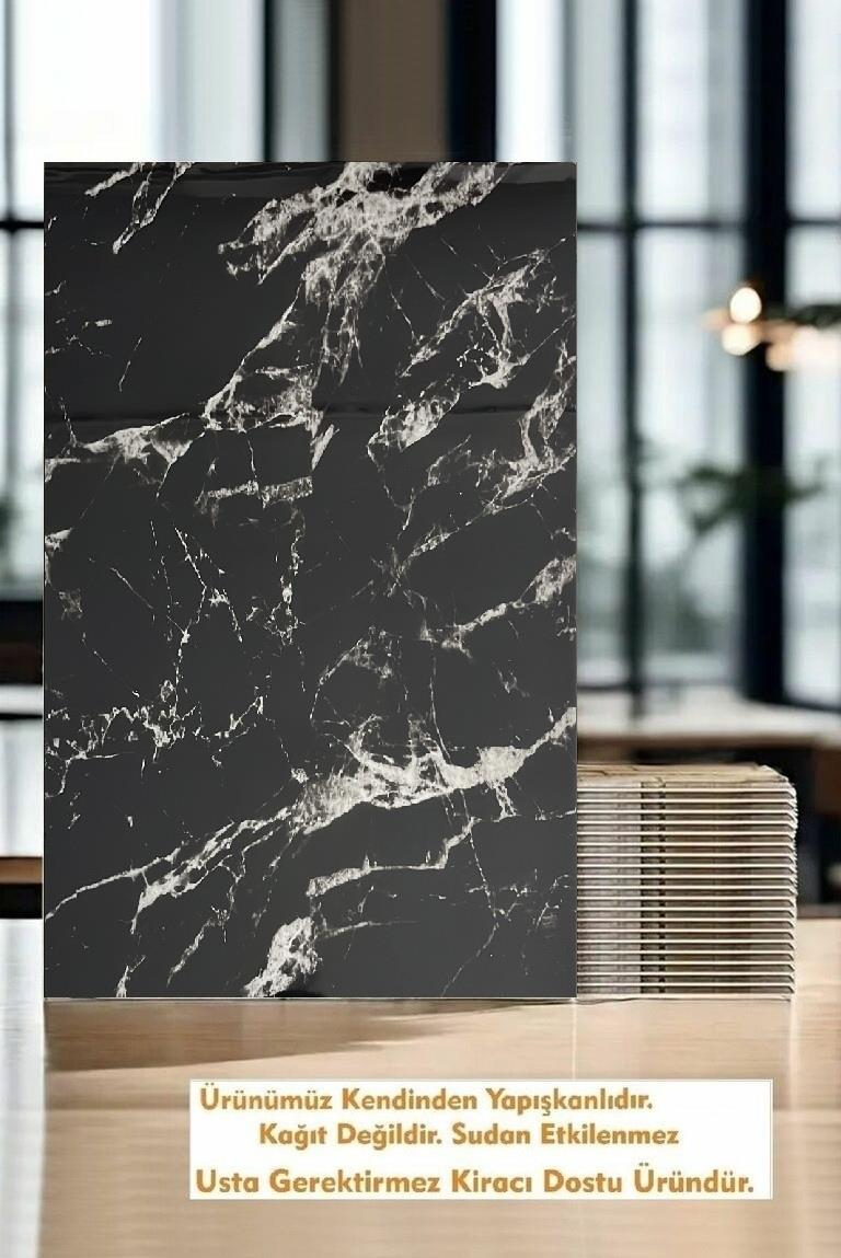 30x60 Cm Gri Siyah Mermer Desenli Kendinden Yapışkanlı Mutfak Banyo Wc Kaplama Duvar Paneli MR08