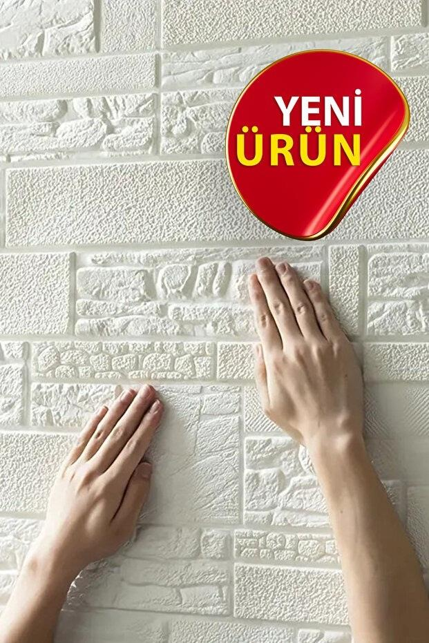 70x70cm 0,50M² Beyaz 3d Dekoratif Kendinden Yapışkanlı Taş Ev Tuğla Kesme Taş Köpük Duvar 3105