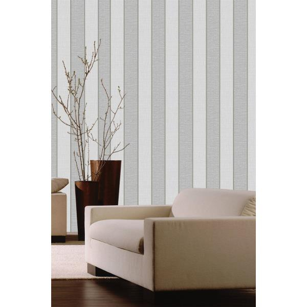 Bien Duvar Kağıtları 5353 Popüler Soft Gri Krem Kalın Çizgili Lüx Duvar Kağıdı 5,30 M²