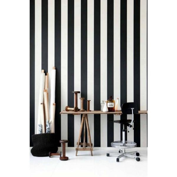 Bien Duvar Kağıtları - 7950 Kalın Çizgili Siyah Beyaz Duvar Kağıdı (5 M²) BN7950, 0.53 x 10