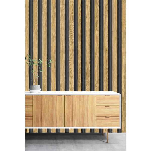 Bien Exclusive 2069 Ahşap Meşe Renk Lambri Desen Premium Duvar Kağıdı 5 M²