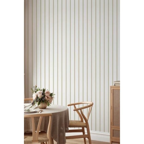Bien Exclusive 5359 Sade Kombin Soft Bej Gold Şerit Çizgili Premium Duvar Kağıdı 5,30 M²