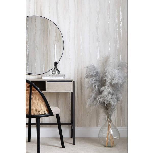 Bien Exclusive 5366 Metalik Gümüş ile Soğuk Gri Akan Desen Duvar Kağıdı 5,30 M²