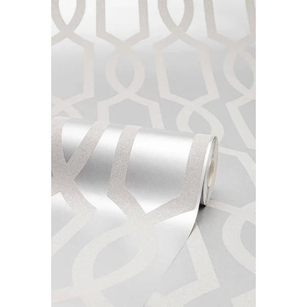 Bien Exclusive 5377 Metalik Gri ve Soft Bej Geometrik Desen Duvar Kağıdı 5,30 M²