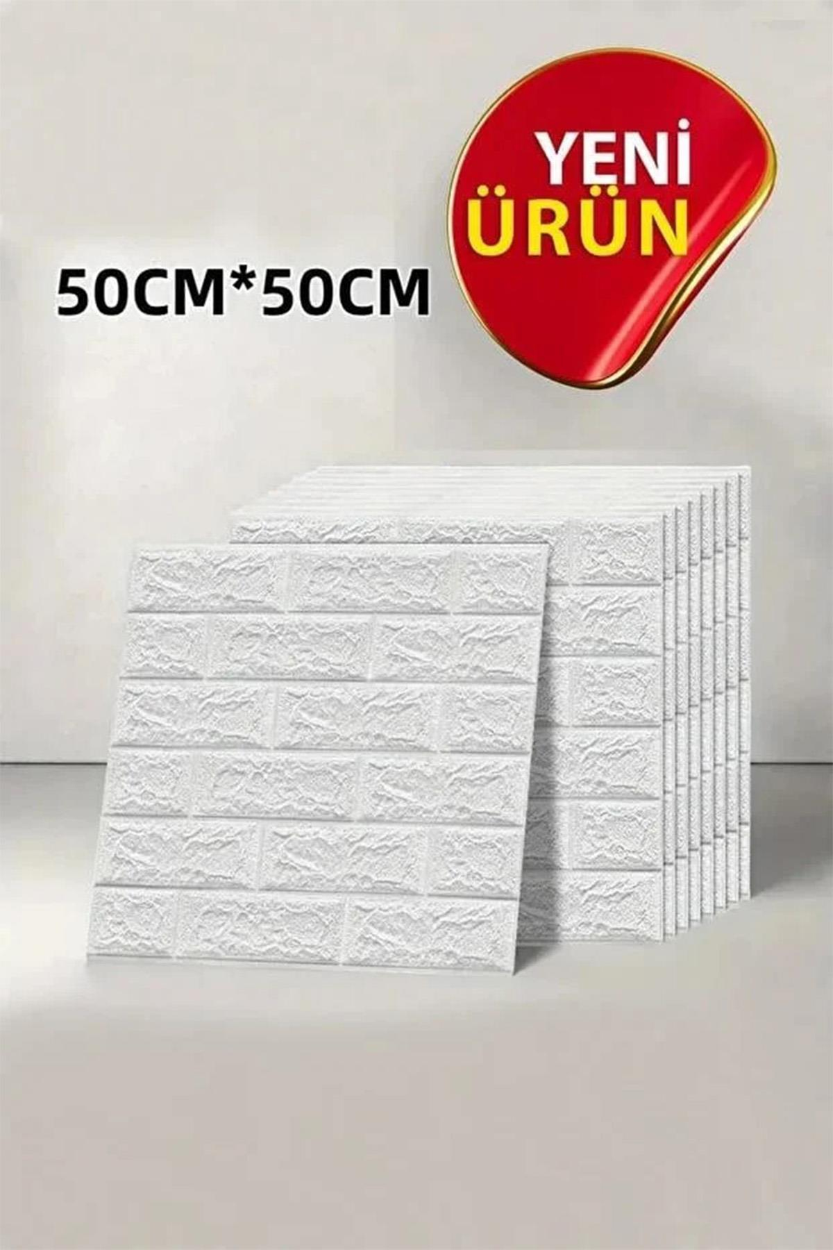 Bien Home 50x50Cm Kendinden Yapışkanlı Duvar Kağıdı Esnek Köpük Paneli 3d Boyutlu Tuğla Desen Beyaz 0,25 M²