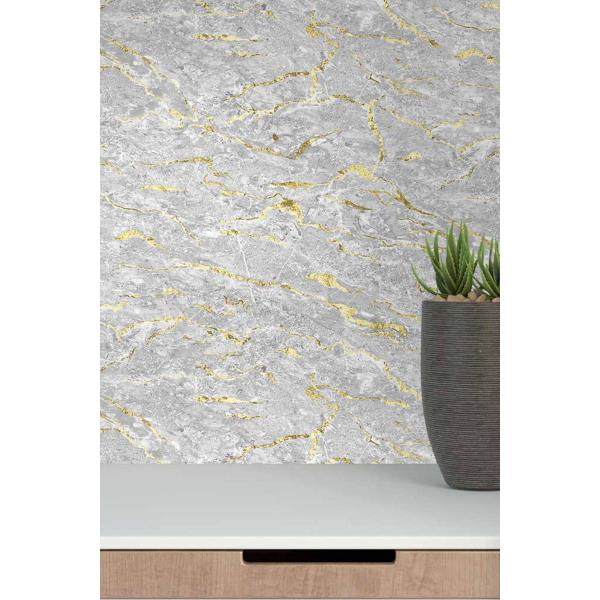 Zümrüt Exclusive 3d Mermer Gri Gold Damarlı Mermer Desenli Duvar Kağıdı 5,33 M² -7086 BNZ