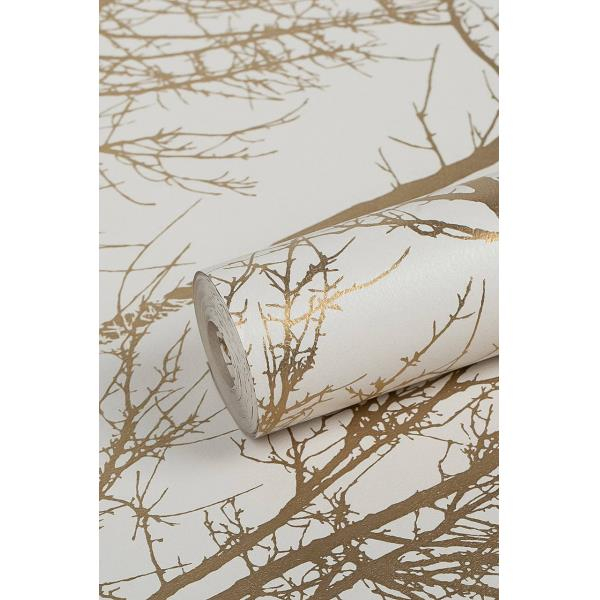 Zümrüt EXCLUSIVE 6250 Vision Çiçekli Dallı Krem Gold Desen Duvar Kağıdı 5,30 M²