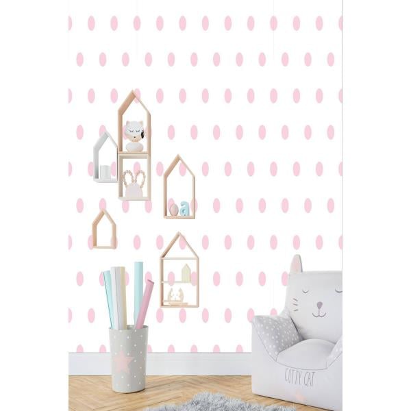 Zümrüt Kids 407-3 Pembe Puantiye Desenli Çocuk Duvar Kağıdı 5,33 M² Bir Rulonun Ölçüleri:    Eni : 53 cm  Boyu 10,00 metre    1 Rulo  5,33 m'2 alan kaplar      Leke ve kir tutmaz.  Hava alabilir     1 Rulo  5,33 m'2 alan kaplar