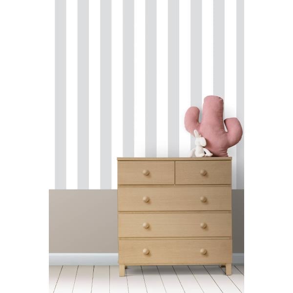 Zümrüt Kids 430-1 Gri Kalın Çizgi Desenli Çocuk Duvar Kağıdı 5,33 M² Bir Rulonun Ölçüleri:    Eni : 53 cm  Boyu 10,00 metre    1 Rulo  5,33 m'2 alan kaplar      Leke ve kir tutmaz.  Hava alabilir     1 Rulo  5,33 m'2 alan kaplar